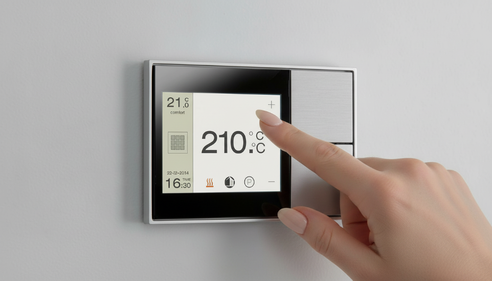 O conforto deve ser natural. As nossas soluções controlam a temperatura zona a zona e combinam aquecimento com arrefecimento, renovação do ar, e ventilação inteligente, tudo integrado de forma invisível. Sistemas de climatização inteligentes mantêm a qualidade do ar e humidade equilibrados, enquanto o sombreamento inteligente e sensores de janela reduzem a carga térmica automaticamente. Utilizando horários, sensores de presença, dados meteorológicos, e deteção de janelas abertas, otimizamos o consumo energético sem prejuízo do conforto. Controle a climatização deste qualquer interruptor, termostato, painel táctil, ou utilizando a app no seu smartphone, tablet ou computador, local ou remotamente.
